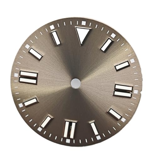AOIMBNQC 1pc 29.5MM Watch Dial Green Luminous Silver Nails Square NH35 for NH36 Movement Single Calendar Face(Brown)