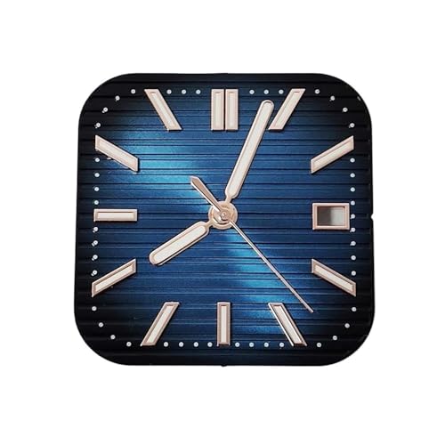 AOIMBNQC 1set 29.5MM Watch Dial Green Luminous Rose Nails Square Faces + Hands for NH35 NH36 Movement Single Calendar Pointer(Blue Dial Hands)