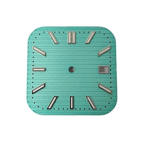 AOIMBNQC 1pc 29.5MM Watch Dial Green Luminous Rose Nails Square Faces for NH35 NH36 Movement Single Calendar(Cyan Dial)