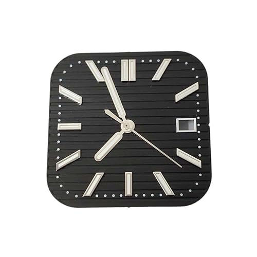 AOIMBNQC 1set 29.5MM Watch Dial Green Luminous Rose Nails Square Faces + Hands for NH35 NH36 Movement Single Calendar Pointer(Black Dial Hands)