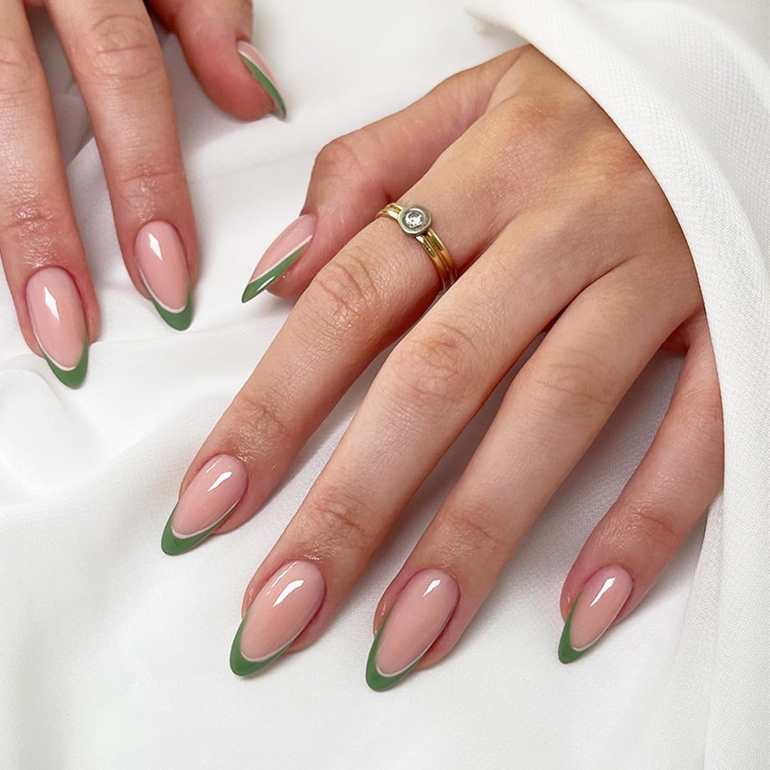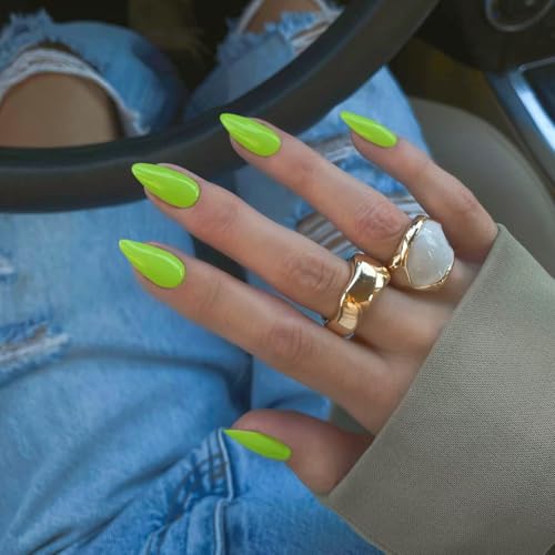 Invogue Venom Green Oval False Nails - 24 Pack with Glue, Natural Fit, Fast...