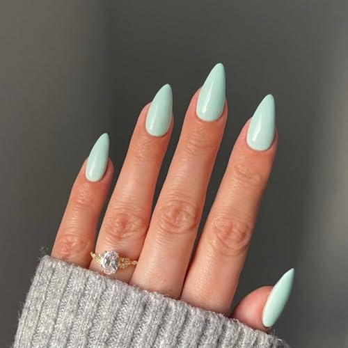 SXVME Mint Green False Nails Medium, Acrylic Press on Nails Almond Solid Color Full Cover Fake Nails Medium Stiletto Stick on Nails for Women DIY Nail Art 24 Pcs
