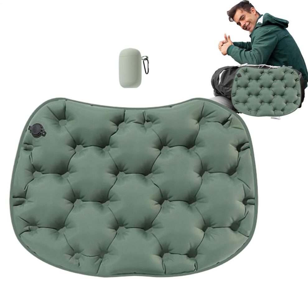 Inflatable Seat Cushion For Airplane With Storage Case Olive Green For Office Chair Bleacher Stadium Car Train