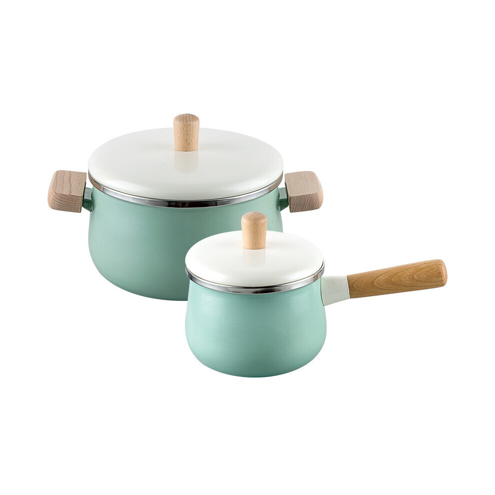 Kitchen Cooking Pot Set 3.3L Saucepan Enamel Cookware with Wood Handle Ears 1.8 Milk Pot Pink Green Pan Set Items