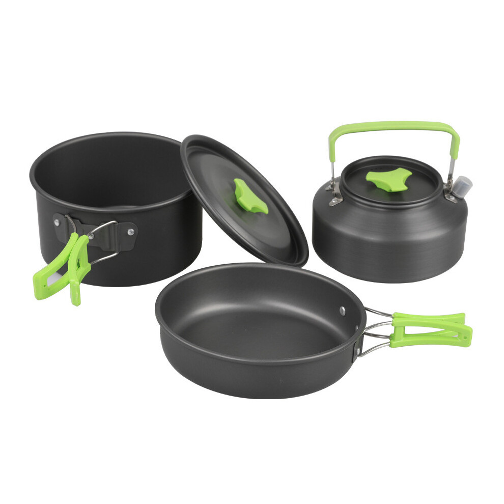 (Green) Camping Cookware Set Outdoor Tableware Utensils Hiking Picnic Portable Pot Pan
