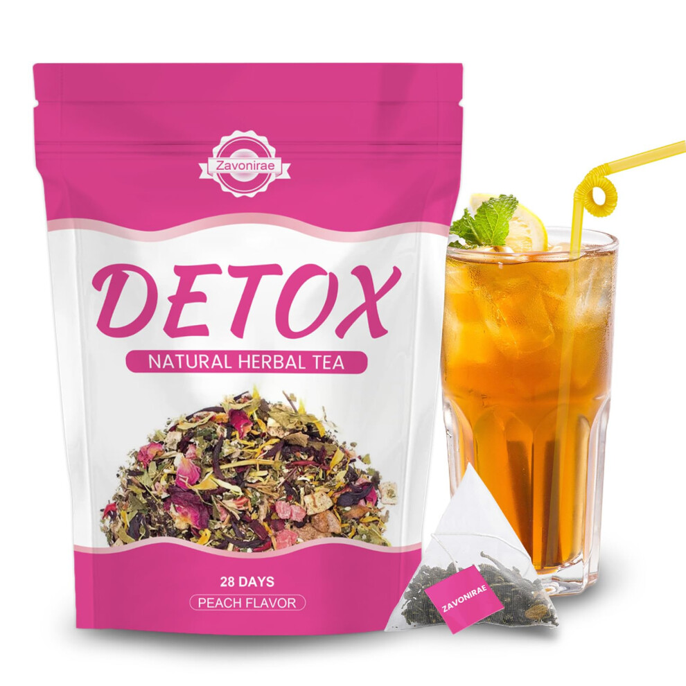Detox Tea - 28 Days Herbal Tea | Natural Wellness Tea with Green Tea & Dandelion | Gentle Cleanse & Metabolism&Healthy Weight Support | Vegan, Caffeine-Free, Peach Flavour