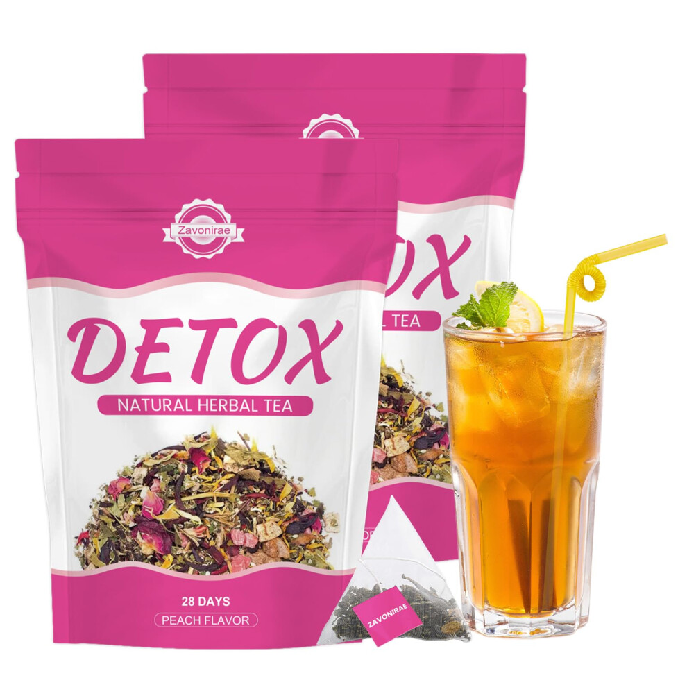 Detox Tea - 56 Days Herbal Tea | Natural Wellness Tea with Green Tea & Dandelion | Gentle Cleanse & Metabolism & Healthy Weight Support | Vegan, Caffeine-Free, Peach Flavour