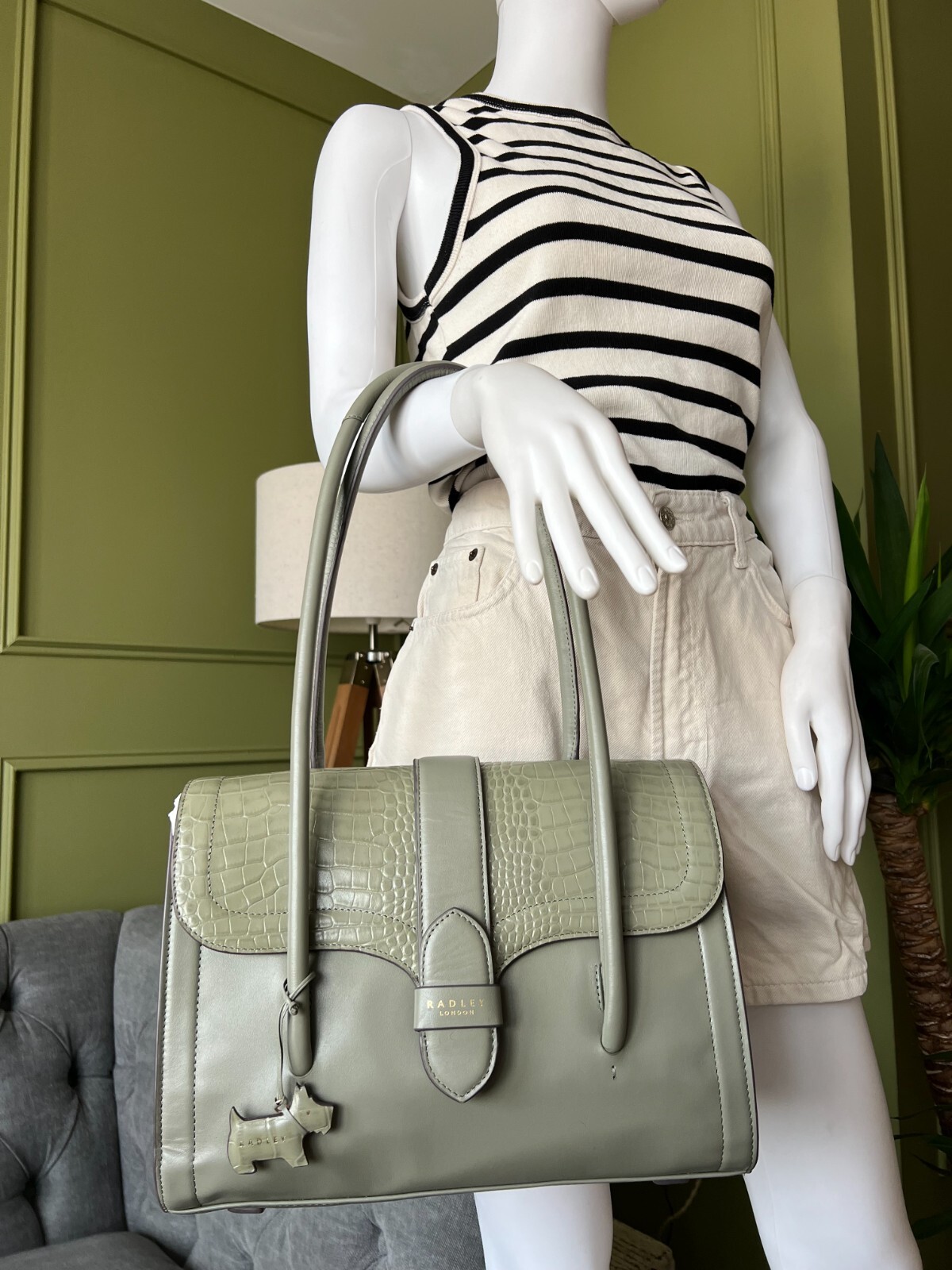 RADLEY Handbag Green Leather Medium Bag - Painters Mews-Faux Croc - RRP £219