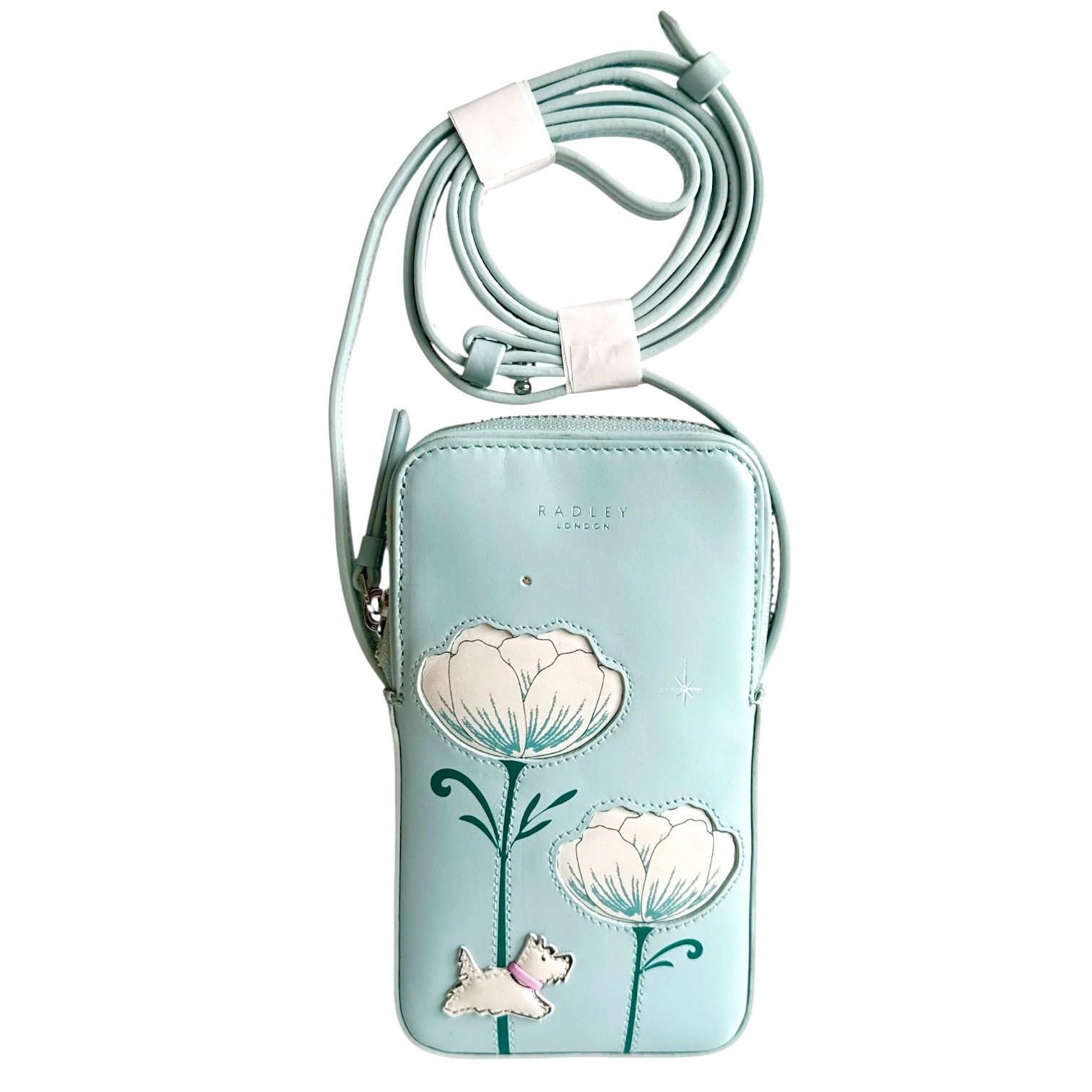 RADLEY Phone Bag Open Green Leather Medium Phone Crossbody Bag -Spring Rose -New