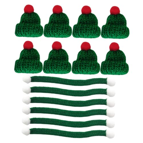 LABRIMP 20Pcs Mini Knitted Christmas Doll Hats and Green Scarves Set, 4X4Cm Woolen Xmas Mini Hats 23Cm Scarves, Festive DIY Xmas Decorations for Doll Accessories and Holiday Crafts