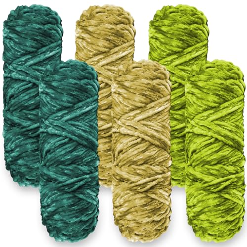 Crochet Yarn Chunky Yarn for Crochet Chunky Wool for Knitting 100g Balls x 6 Chenille Yarn Wool for Crochet Kits for Beginners Adults for Handmade Crafts Hats Blankets Scarves(Green Set, 6pcs-600g)