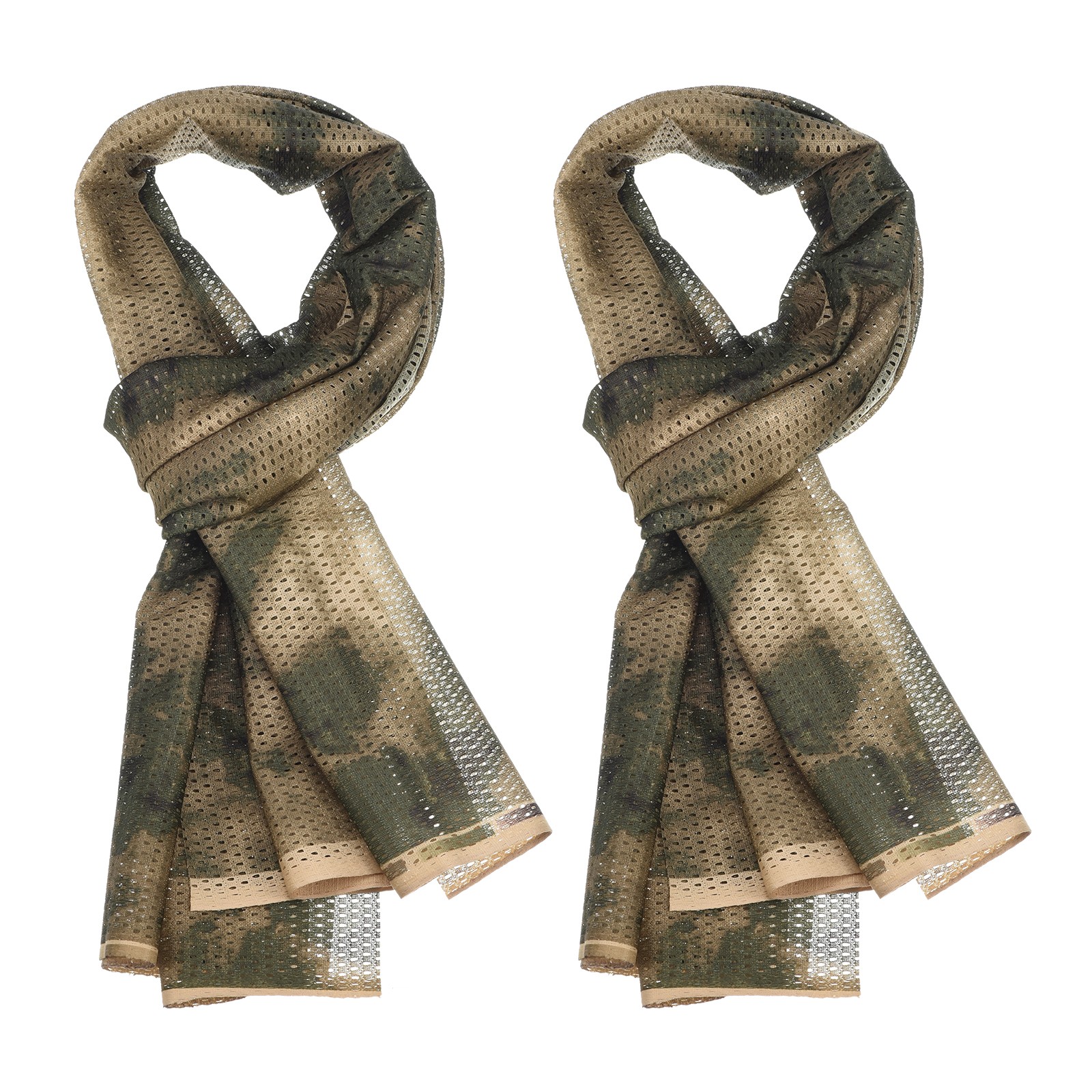 2Pcs 71"x35" Camouflage Veil Scarf, Mesh Neck Scarves, Green/Snow Camo
