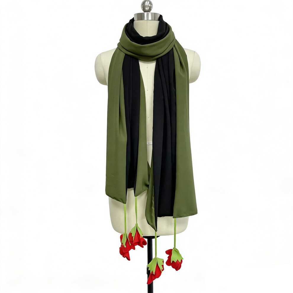 (M, Black Green) Women's Chiffon Scarves with 3D Flower Fashionable Contrast Color Shawl Warps for Vacation Party