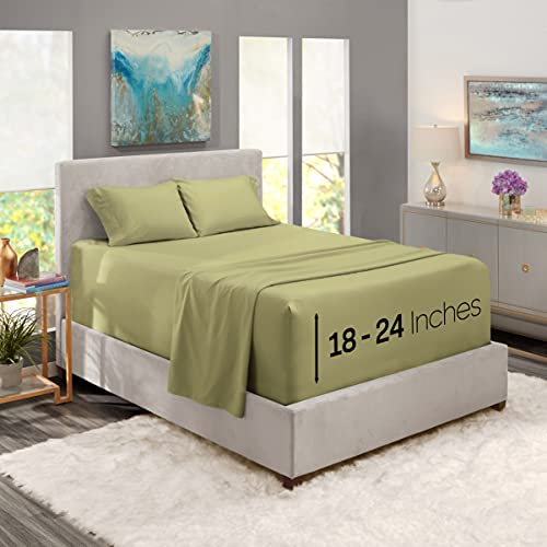 Nestl Extra Deep Pocket Sheets - Fits Mattress 18-24 Inches Deep, Extra Deep Pocket King Size Sheets Sets, 4 Piece King Size Sheets, King Sheets Deep Pocket, Sage Olive Green Sheets