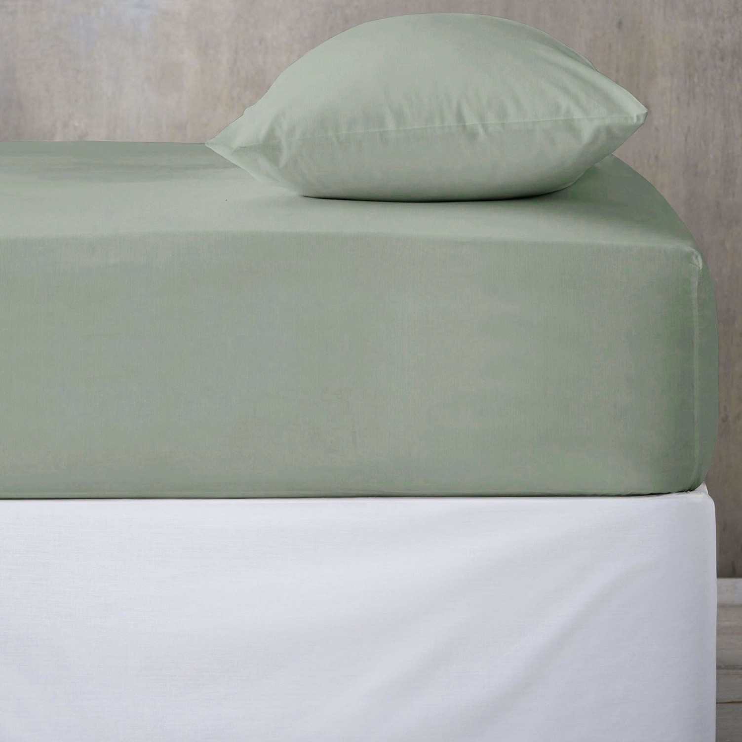Serene - Mint Green Fitted Sheet - 32cm Deep - Super King (200 x 180cm) - Soft Polycotton - Elastic Corners - Washable Green Bed Sheets