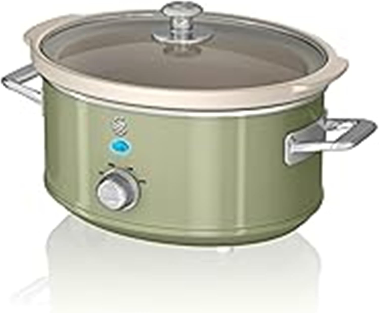 Swan Retro Slow Cooker 3.5L with 3 Settings, Keep Warm, Dishwasher Safe Pot, Gre