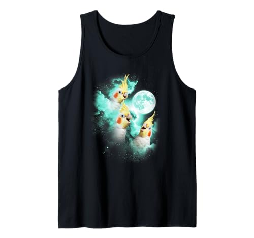 Three Cockatiel Howling at The Moon tie dye Green Tank Top