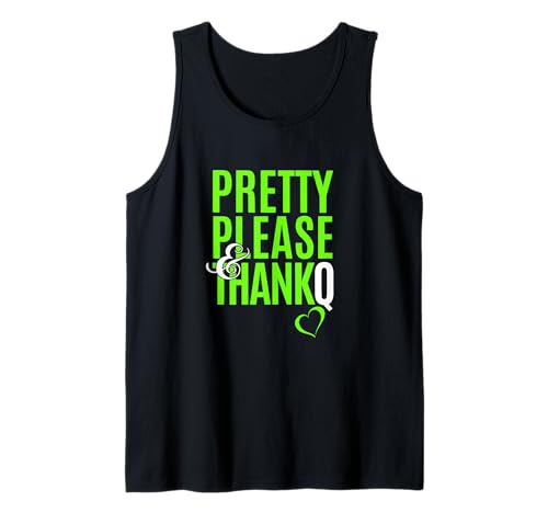 Green Color Pretty Please & ThankQ Green Graphic Tank Top
