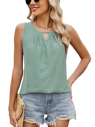 iChunhua Women's Green Eyelet Sleeveless Tank Top M