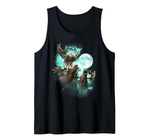 Three Moose Howling at The Moon tie dye Green Tank Top
