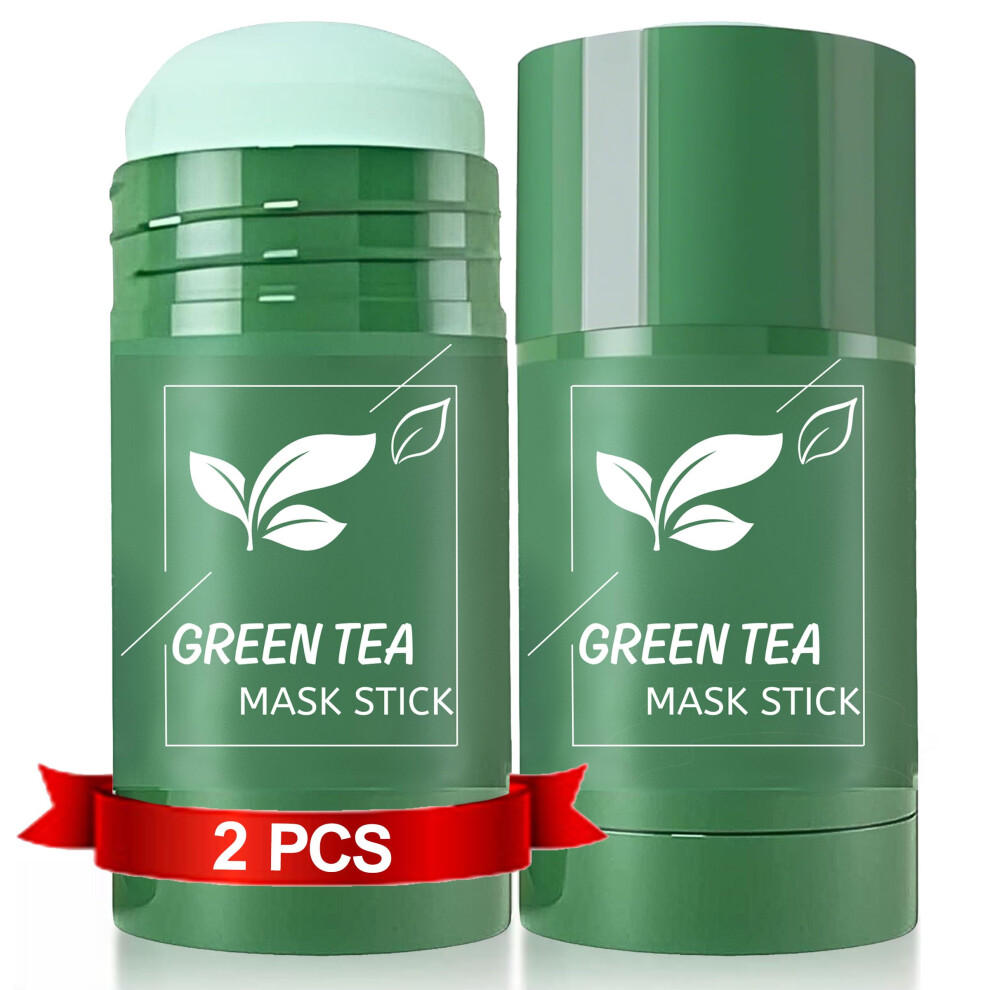 2PCS Green Tea Mask Stick for Face - Cleansing Purifying Clay Mask, Reduce Blackhead & Acne, Moisturizing, Oil Control, Deep Clean Pore, , Improves Skin, for All Kind Skin Type Women Men