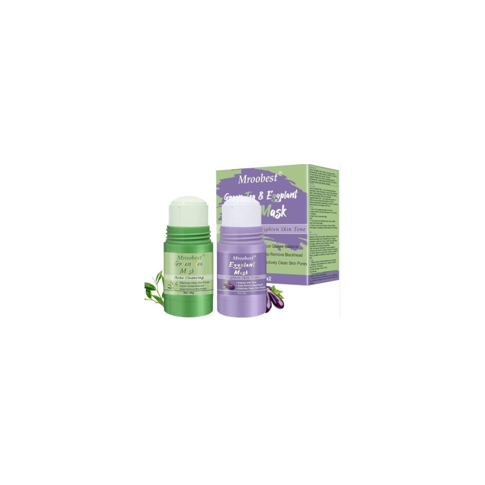 ( 1PCS Green Tea + 1PCS Eggplant) Green Tea Mask Stick Facial Cleansing Oil Acne Blackhead Control Cleaner