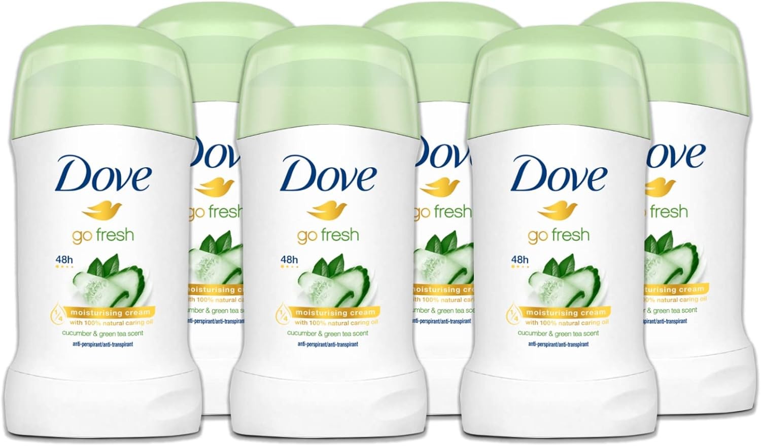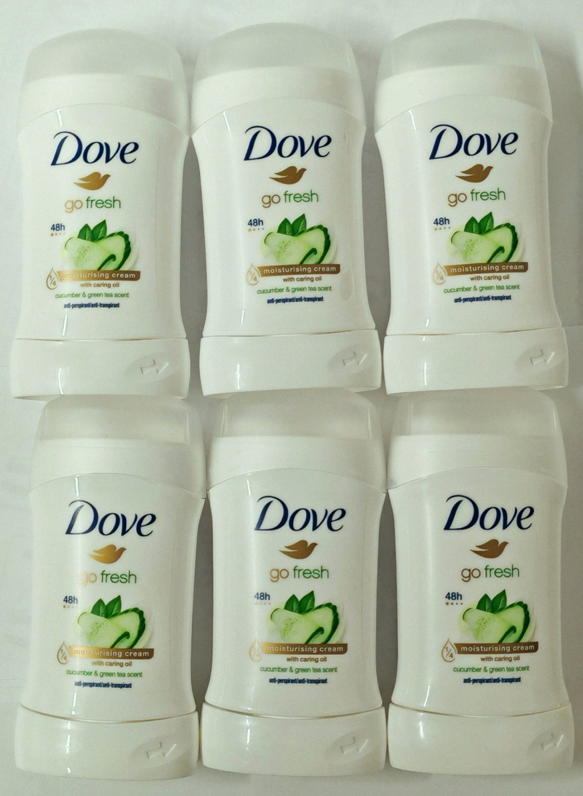 6x40ml Dove Go Fresh Cucumber & Green Tea Deodorant Antiperspirant Stick 48h