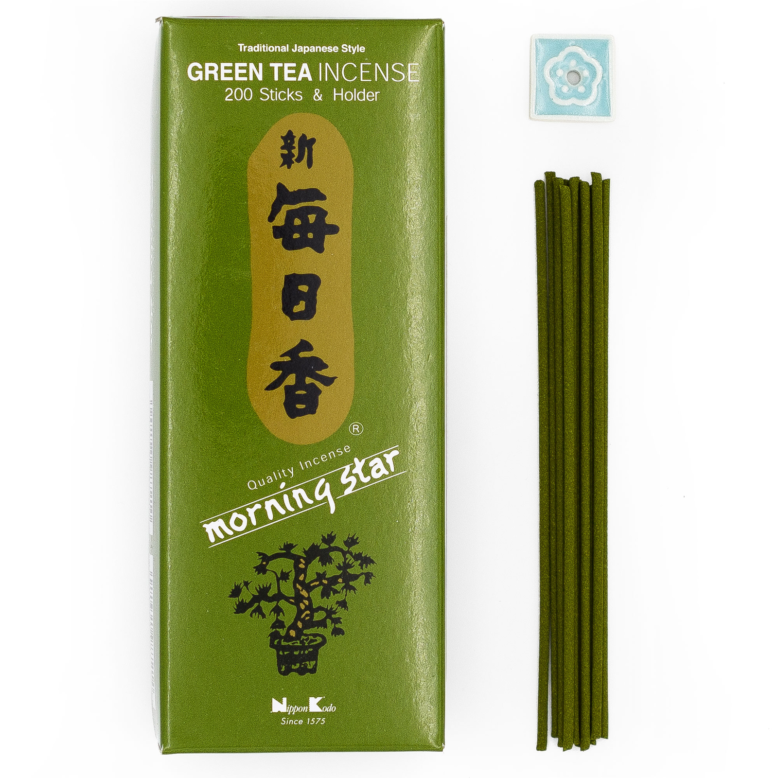 Nippon Kodo Morning Star Green Tea Japanese Incense - 200 Stick Box + Holder