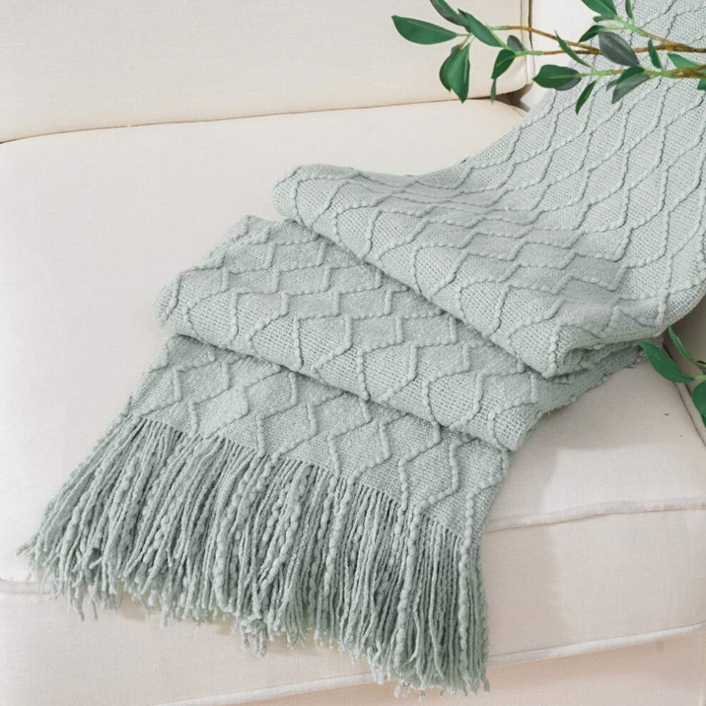 inhand Sage Green Throw Blanket for Couch Soft Living Room Home Decor Knitted Blanket with Tassel Outdoor Lightweight Breathab