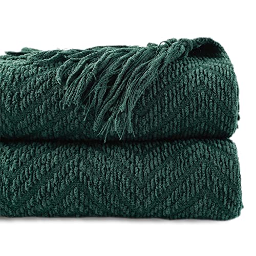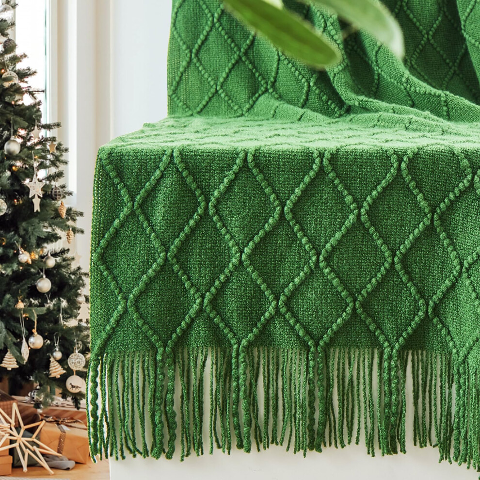Blagic Knitted Throw Blanket for Couch, Bed and Sofa. Super Soft Blanket with Tassels, Hiking Green Throw Blanket, 50 x 60 Inches Lightweight & Cosy Home Decor