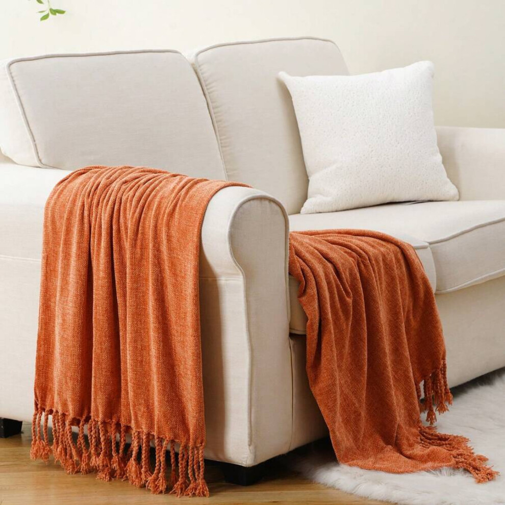 Compatible with Apple Green Chenille Throw Blanket, 50"x60", Soft Knit with Tassels for Couch & Home Decor