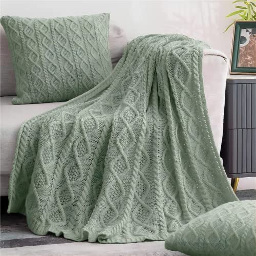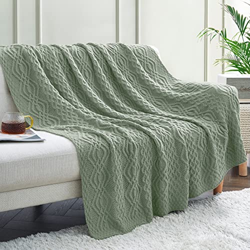 Aormenzy Cable Knit Throw Blankets 50 x 60 Inches, Soft Cozy and Lightweight Knitted Blanket, Machine Washable Acrylic Blanket, Decorative Throw Blanket for Couch Sofa Bed, Sage Green
