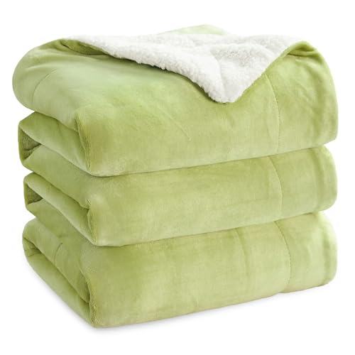 Bedsure Sherpa Fleece Throw Blanket - Super Soft, Cozy & Warm Jacquard Sofa Throw, Ideal for Bed & Couch, Double/Twin, Light Green, 150x200cm