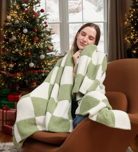 QQP Checkered Throw Blanket,Soft Cozy Microfiber Reversible Checkerboard Fluffy Throw Blanket,50X60In Blanket for Home Bed Couch.(Sage Green)