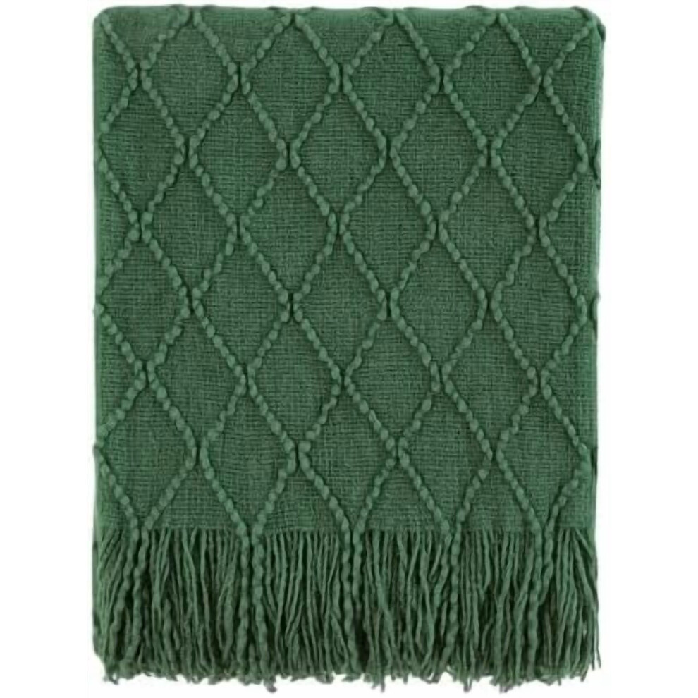 Green Throw Blanket 60x80 Inches Throw Textured Solid Soft Sofa Throw Couch Knitted Decorative Blanket