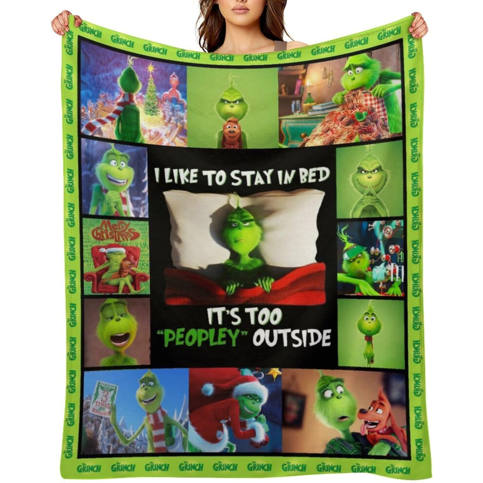 Grinch Blanket Christmas Blanket Funny Green Throw Blanket Holiday Theme Home Décor Fuzzy Warm and Cozy Throws for Couch, Bedding and Gift