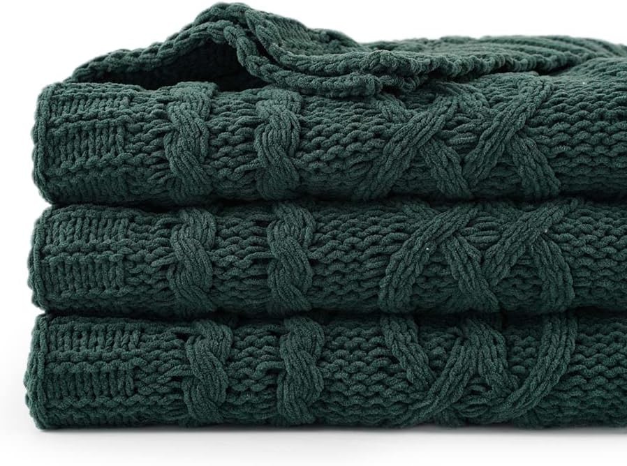 Battilo Christmas Dark Green Throw Blanket for Couch, Woven Chenille Knit Throw