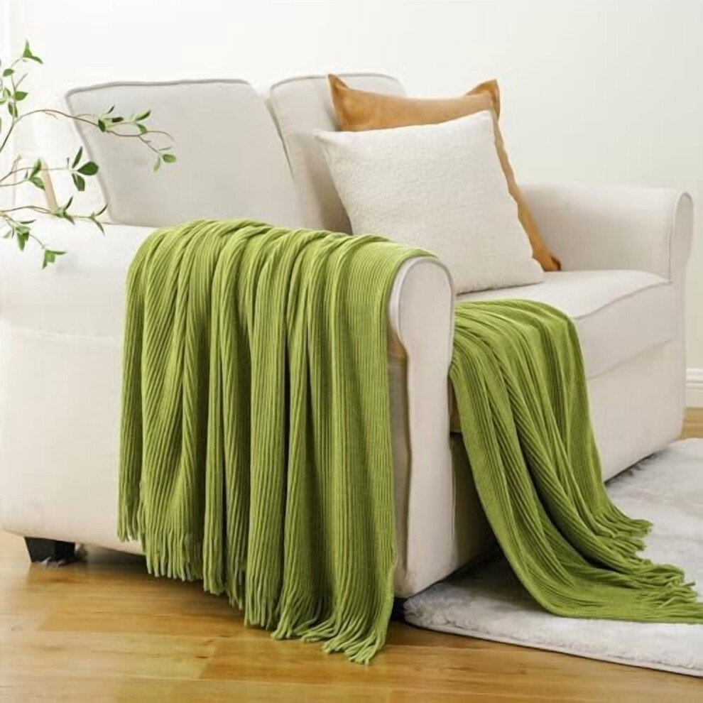 Olive Green Throw Blanket for Sofa Couch Chair Bed, Super Soft Decorative Knitte