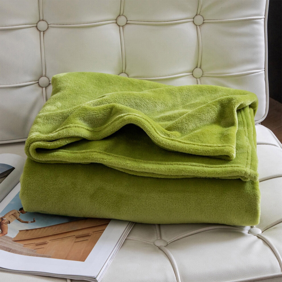LANE LINEN Olive Green Fleece Throw Blanket 127x152cm Soft Plush Cozy Warm
