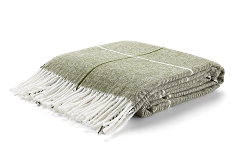 Tweedmill Textiles Herringbone pure new wool blanket throw rug Olive Green BRITISH MADE