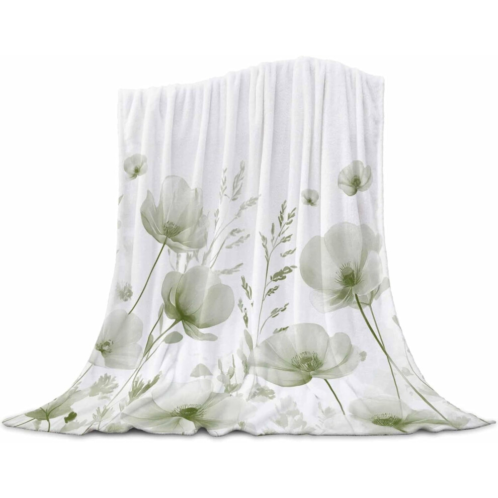 Watercolor Vintage Sage Green Flowers Fleece Throw Blanket, Soft Microfiber, 40x50 Inch, Lightweight & Cozy for Couch, Bed, Sofa