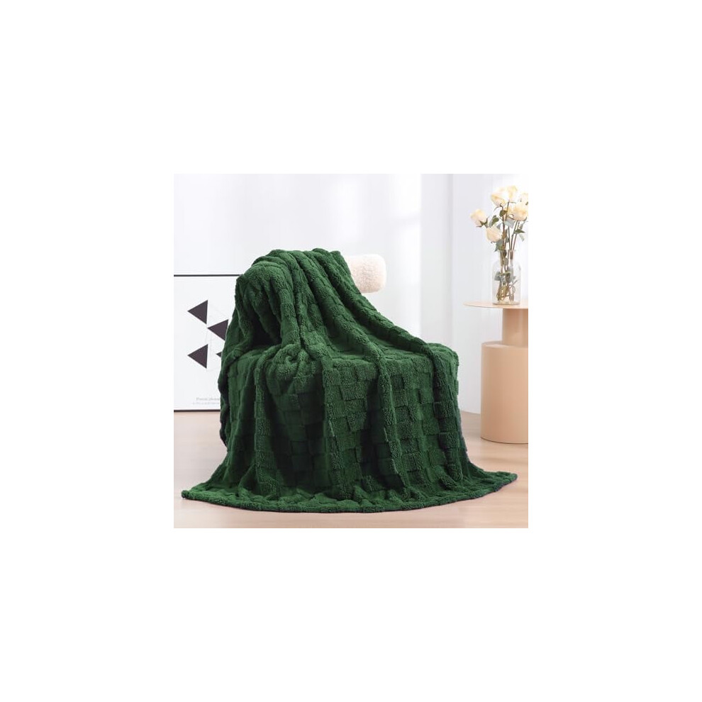 Emerald Green Twin Throw Blanket 60x80", Super Soft 3D Checkered Fuzzy Fleece, Luxurious Plush Cozy Blanket for Fall/Winter Decor