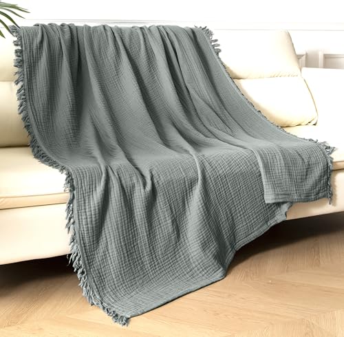 KyraHome 100% Organic Cotton 60"x80" Muslin Gauze Throw Blanket for Couch, Adults, Travel, 4-Layer Pre-Washed Plant-Hand Dyed, Breathable Soft, Cozy, Home Decor, All Season (Sage Green)