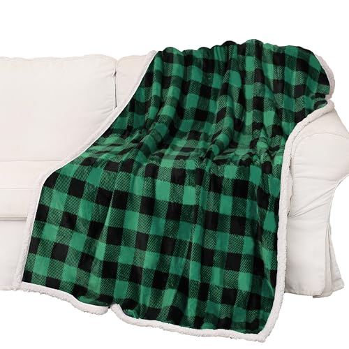 Catalonia Classy Tartan Sherpa Throw Blanket, Warm Thick Soft Winter Fluffy Plush Couch Throw, Reversible Cozy Fleece Blanket Sofa Single Bed, 150 x 130 cm Plaid Green