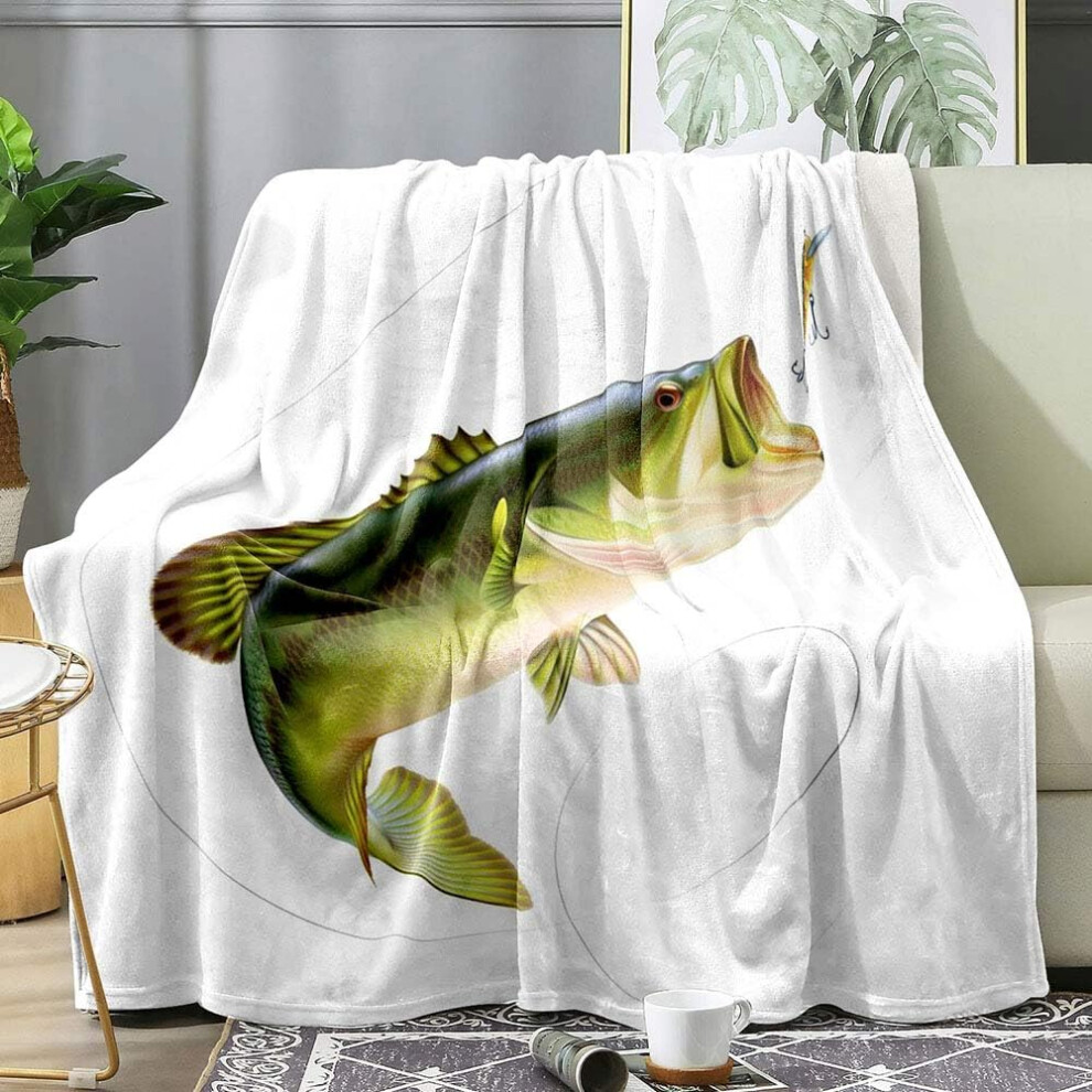 Green Largemouth Fish Throw Blanket, compatible with fishing lovers, soft fuzzy flannel fleece blanket for bed or couch, 60"x80"