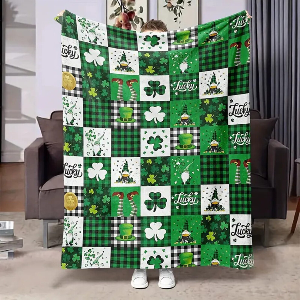 Shamrocks Print Gnome Luxury Flannel Cozy Bed Blanket Soft Warm Lightweight Suitable For Sofa Bed Office Travel Decor Green Plaid Throw Blanket