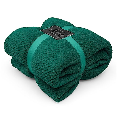 GAVENO CAVAILIA Popcorn Honey Comb Sofa Bed Blanket, Super Soft Fluffy Easy Care Lightweight Luxury Design, Cosy Warm Settee Waffle Throw-Over [Single (130x150 cm), Green], 250449
