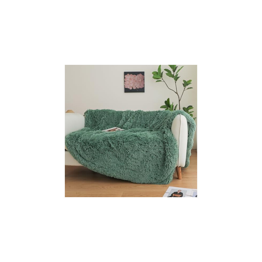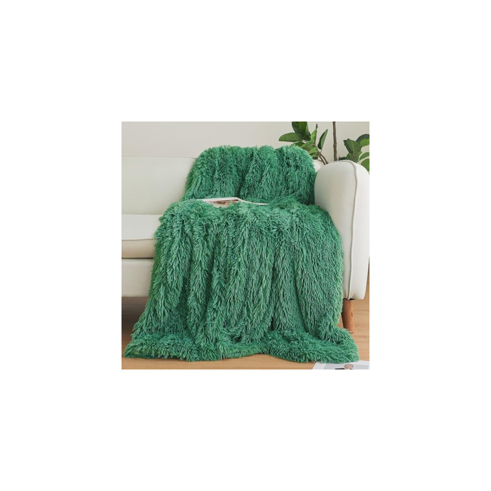 Green Faux Fur Throw Blanket, 80"x90" Fluffy Shaggy Plush Decorative Couch Throw, Cute Furry Fuzzy Lap Blanket for Kids, Women, Men, Teen, Girls