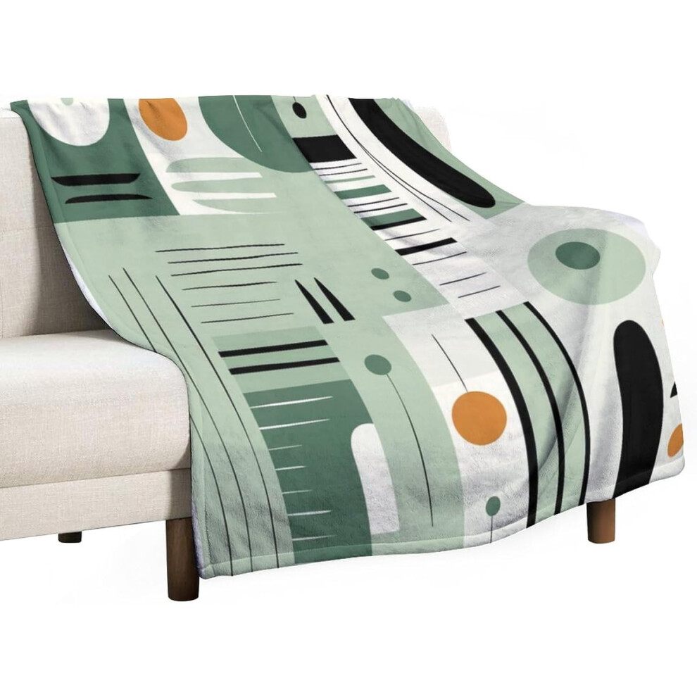 Mid Century Modern Sage Green Abstract Geometric Throw Blanket, 50"x60", Flannel Fleece, Warm Plush, All-Season, Adults & Kids