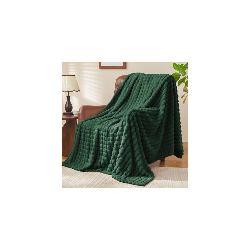 Ribbed Texture Reversible Forest Green Throw Blanket Fluffy and Luxurious Full Queen Blanket (90"" x 90"" Blanket Forest Green)